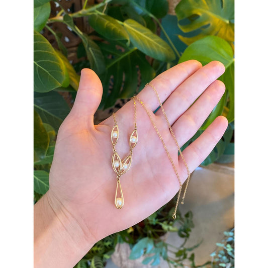 Vintage 10k Yellow Gold Pearls Cage Cable Chain Necklace - 18.75 inches