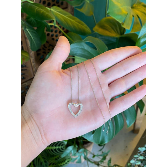 Vintage Solid 14k White Gold Diamond Heart Elongated Curb Chain Necklace - 16.75 inches