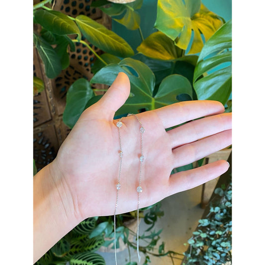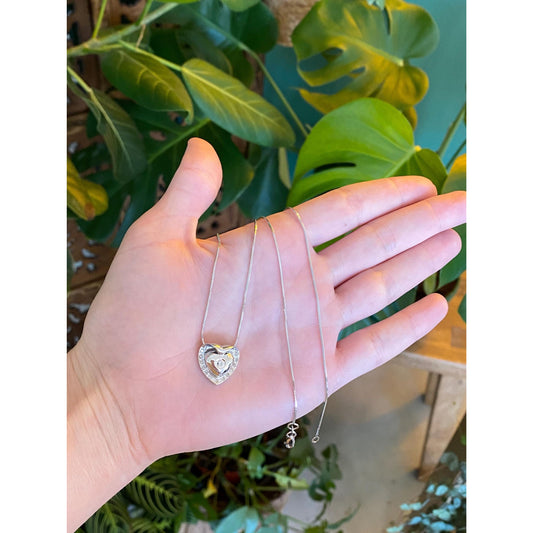 Vintage Solid 14k White Gold Diamond Heart Snake Chain Necklace - 16.5 inches