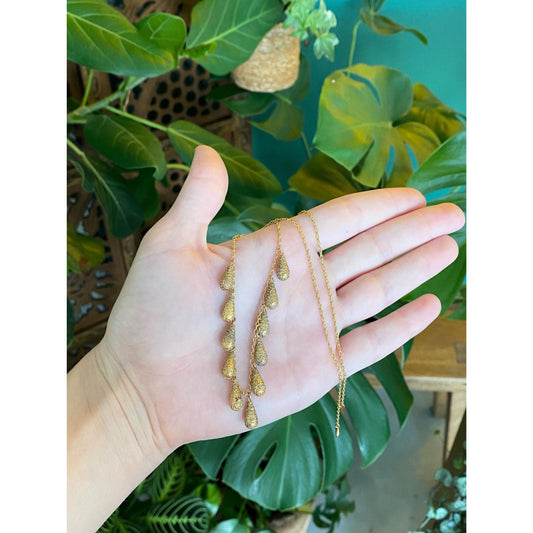Vintage Solid 18k Yellow Gold Designed Teardrop Cable Chain Necklace - 17.5 inches