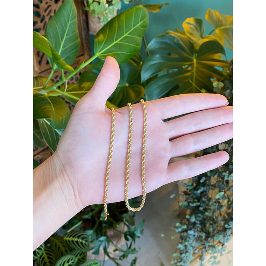 Vintage Solid 14k Yellow Gold Diamond Cut Rope Chain Necklace - 16 inches