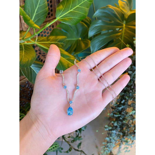 Vintage Solid 14k White Gold Topaz & Diamond Twist Chain Necklace - 16.75 inches