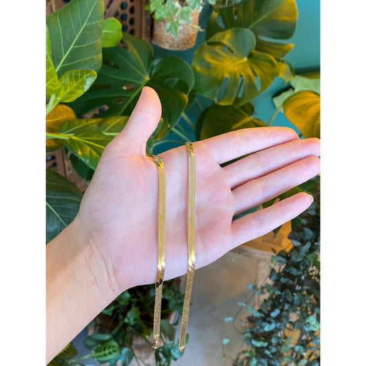 Vintage Solid 14k Yellow Gold Herringbone Chain Necklace - 24 inches