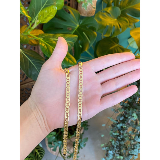 Vintage Solid 14k Yellow Gold Flat Mariner Style Link Chain Necklace - 24.5 inches