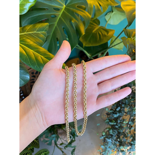 Vintage 14k Yellow Gold Long Chunky Wheat Chain Necklace - 30.25 inches
