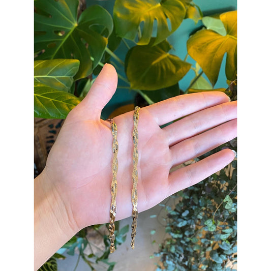 Vintage Solid 14k Yellow & White Gold Twist Herringbone Chain Necklace - 18.25 inches