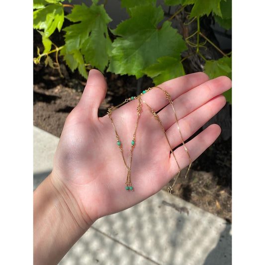 Vintage Solid 14k Yellow Gold Green Bead Ball Spiral Link Box Chain Necklace - 16 inches