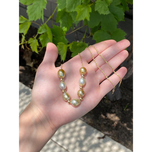 Vintage Solid 14k Yellow Gold Pearl Gold Ball Rope Chain Necklace - 17.75 inches