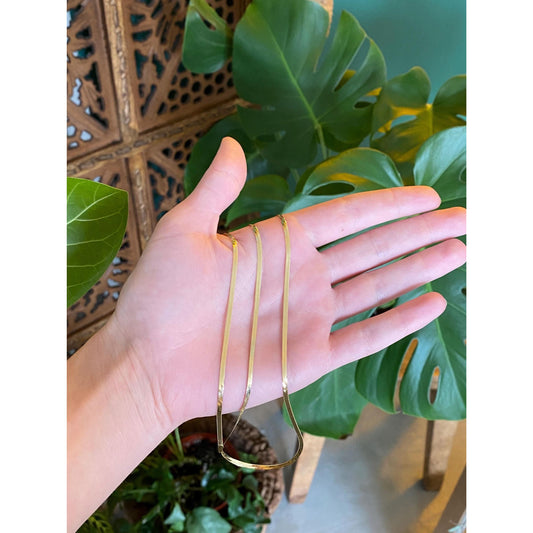 Solid 18k Yellow Gold Slim Herringbone Chain Necklace - 26 Inches