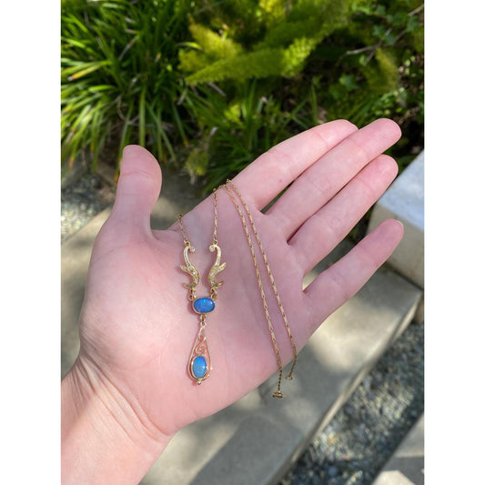Vintage Solid 14k Yellow Gold Diamond Opal Cable Chain Necklace - 18.75 inches
