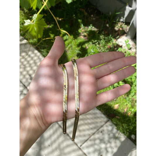 Vintage Solid 14k Yellow Gold Long Chunky Herringbone Chain Necklace - 24 inches
