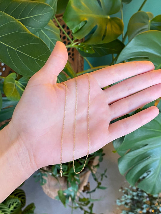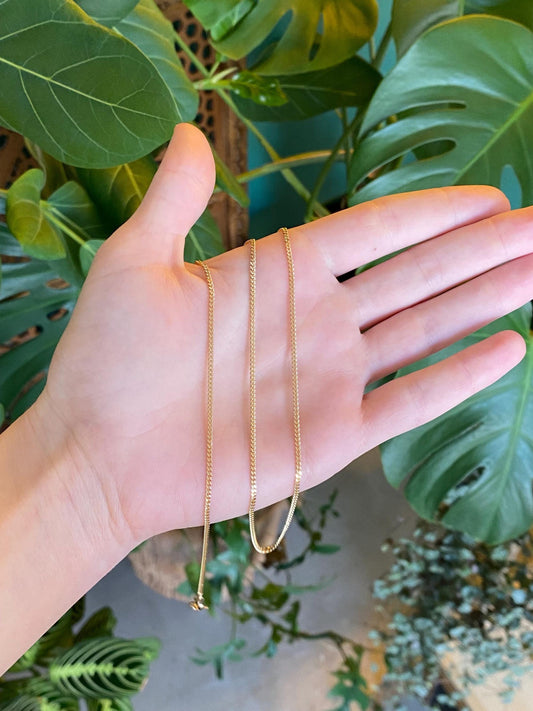 Vintage Solid 14k Yellow Gold Dainty Curb Chain Necklace - 22.5 inches