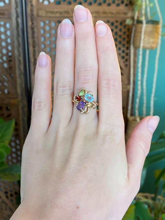 Vintage Solid 14k Yellow Gold Amethyst Topaz Citrine Peridot Garnet Ring - Size 6.75