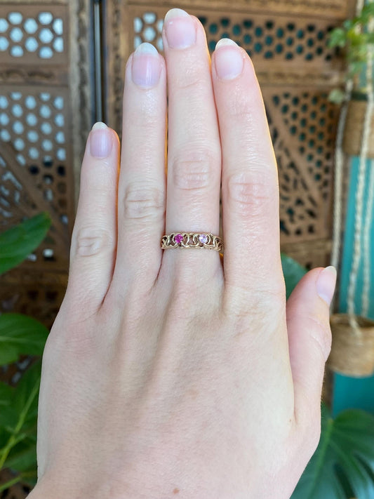 Vintage Solid 10k Yellow Gold Light & Dark Pink Sapphire Ring - Size 6.75