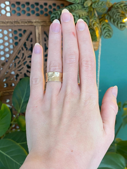 Vintage Solid 14k Yellow Gold Wide Zig Zag Design Ring Band - Size 5