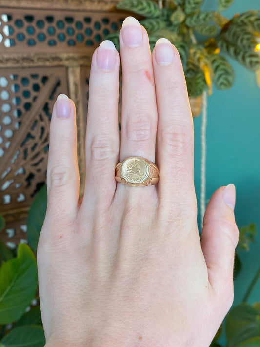 Vintage Solid 14k Yellow Gold Scorpio Signet Ring - Size 7.75