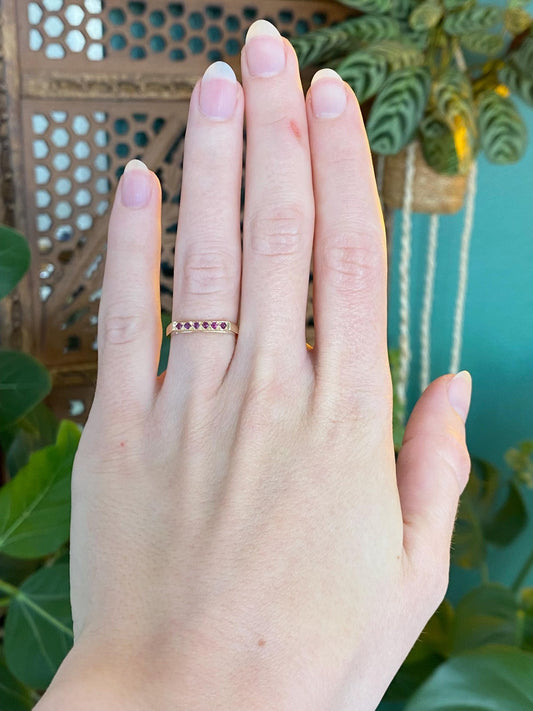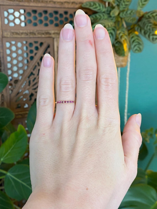 Vintage Solid 14k Yellow Gold Red Spinel Row Ring - Size 5