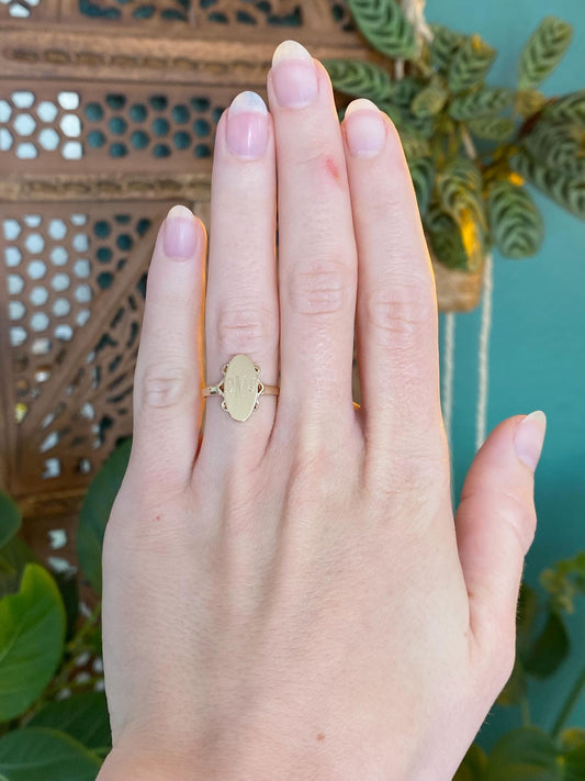 Vintage Solid 10k Yellow Gold Monogram Signet Ring - Size 5.5