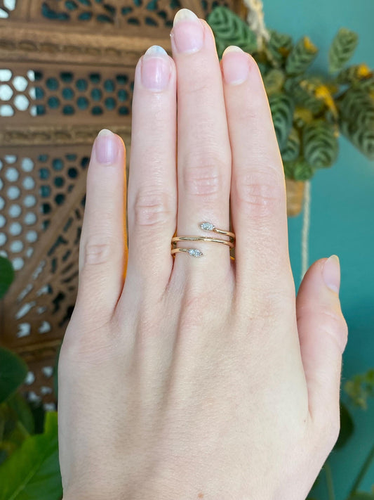 Vintage Solid 14k White & Yellow Gold Diamond Spring Ring - Size 8