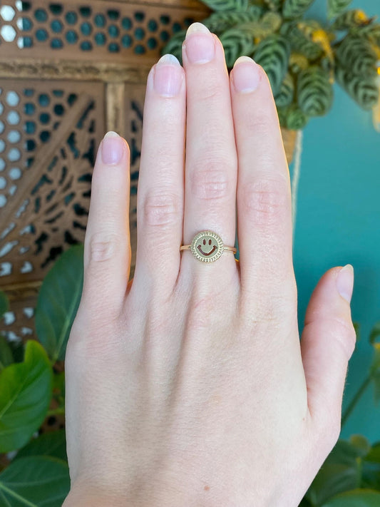 Vintage Solid 10k Yellow Gold Smiley Face Ring - Size 6.25