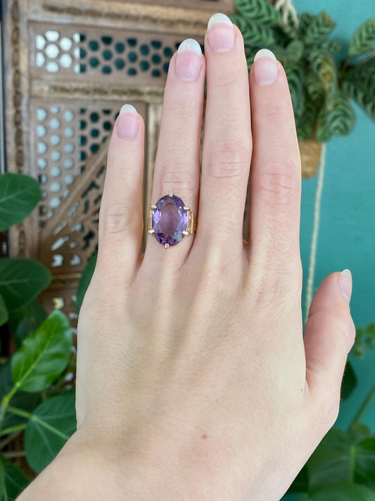 Vintage Solid 10k Rosey Gold Amethyst Ring - Size 3.75