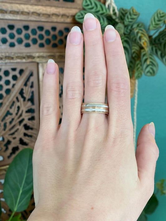 Vintage Solid 14k White & Yellow Gold Rope Border Ring Band - Size 9.75