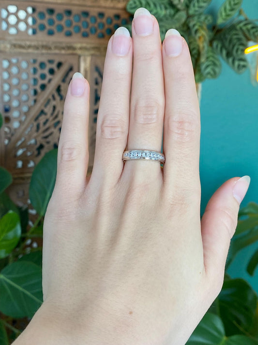 Vintage Solid 14k White Gold Diamond Ring Band - Size 7