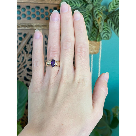 Vintage Solid 14k Yellow Gold Marquis Amethyst Ring - Size 4