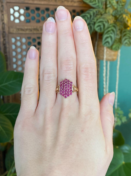 Vintage Solid 14k Yellow Gold Ruby Cluster Ring - Size 8