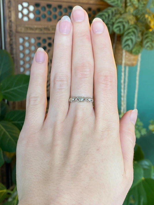 Vintage Solid 14k White Gold X Heart Ring Band - Size 6.75