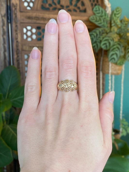 Vintage Solid 14k Yellow Gold Diamond Cut Scalloped Ring - Size 6.5