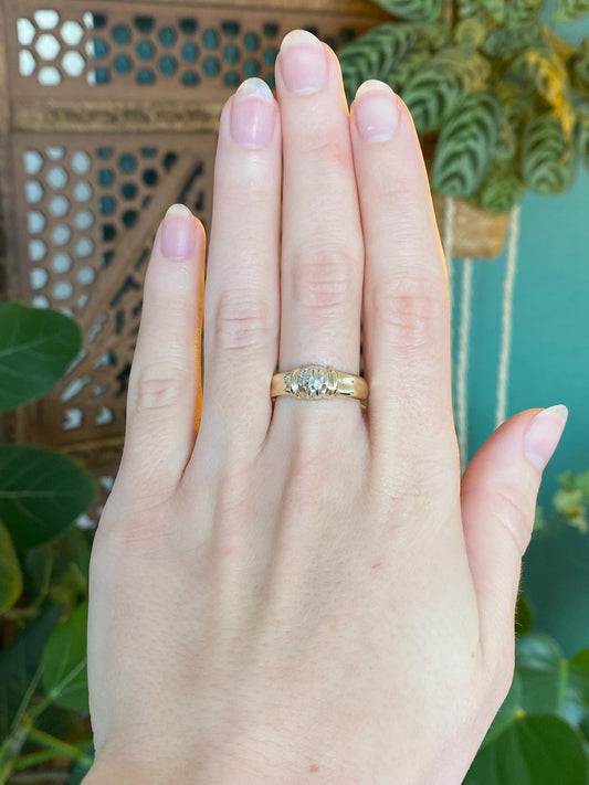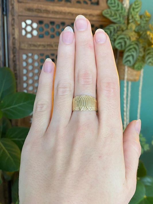 Vintage Solid 14k Yellow Gold Diamond Cut Domed Ring - Size 7