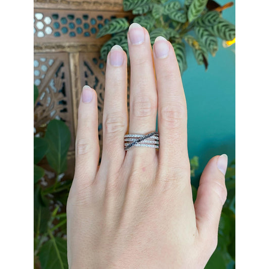 Vintage Solid 10k Yellow Gold Yellow & Black Diamond Twist Ring Band - Size 7