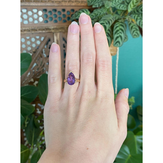 Vintage Solid 14k Yellow Gold Amethyst Teardrop Ring - Size 5.25