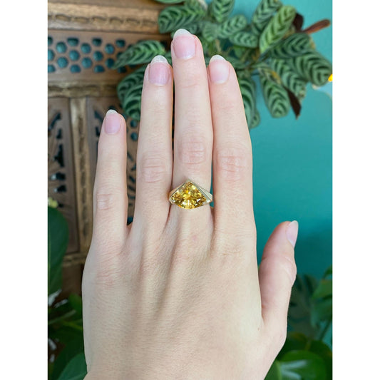 Vintage Solid 14k Yellow Gold Citrine Triangle Ring - Size 5.5