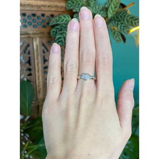 Vintage Solid 14k White Gold Diamond Cluster Heart Ring - Size 8.25