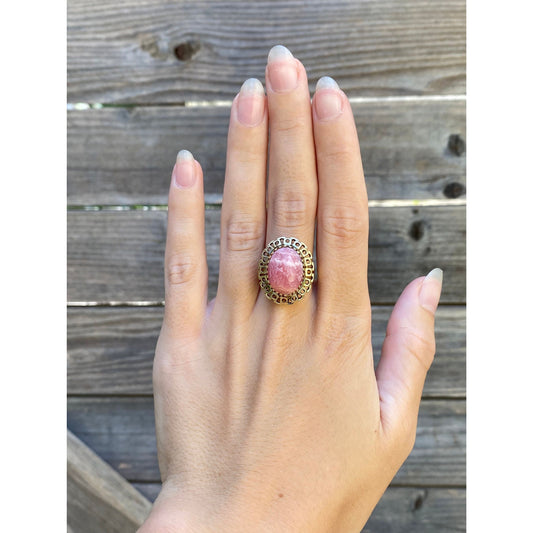 Vintage Solid 14k Yellow Gold Rhodolite Cocktail Ring - Size 7.75