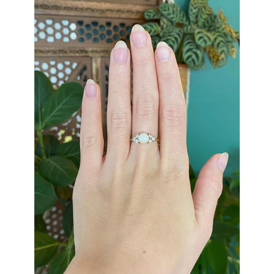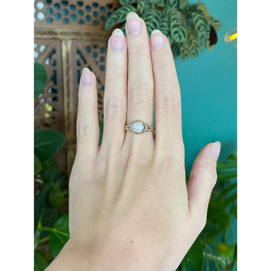 Vintage Solid 14k Yellow Gold Pearl Clear Cubic Zirconia Ring - Size 6.75