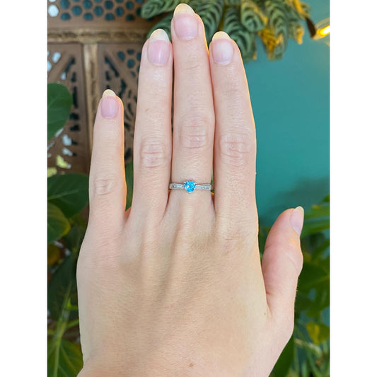 Solid 14k Yellow Gold Diamond Clear & Light Blue Cubic Zirconia Ring - Size 7.25