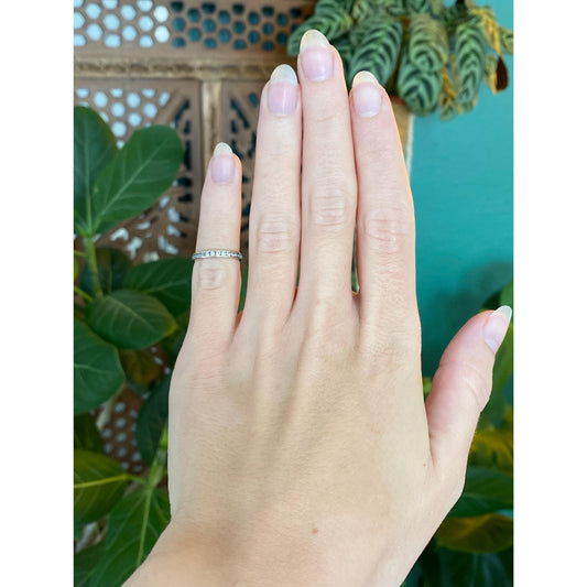 Vintage Solid 14k White Gold Diamond Beaded Texture Ring Band - Size 6.5