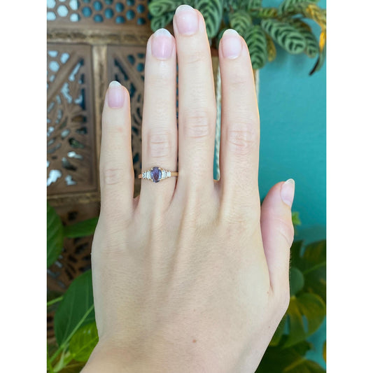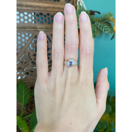 Solid 10k Yellow Gold Tanzanite Cubic Zirconia Ring - Size 5.75
