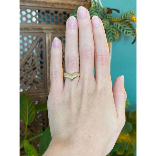 Vintage Solid 14k Yellow Gold Diamond Cut Chevron Ring - Size 5.75