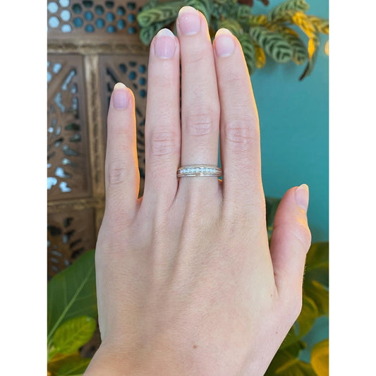 Vintage Solid 14k White Gold Diamond Ring Band - Size 7.75