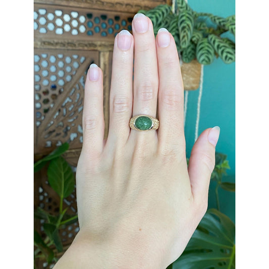 Vintage Solid 10k Yellow Gold Green Stone Textured Ring - Size 8.75
