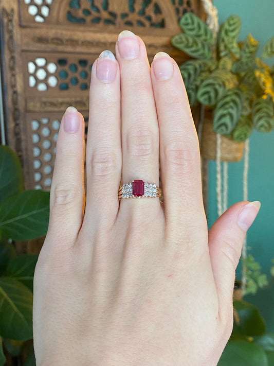 Vintage Solid 14k Yellow Gold Diamond Pink Sapphire Ring - Size 6.75