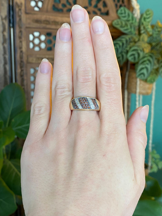Vintage Solid 14k Yellow Gold Clear & Colored Diamond Ring Band - Size 9