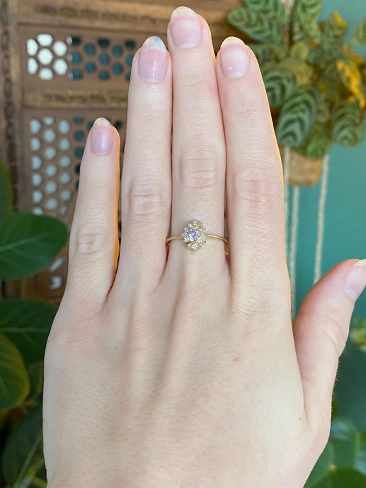 Vintage Solid 14k Yellow Gold Diamond Halo Light Purple Spinel Ring - Size 7.75