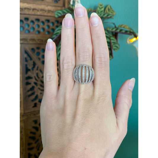 Vintage Solid 18k White Gold Diamond Domed Ring - Size 7