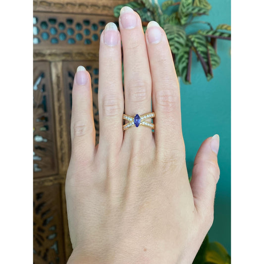 Solid 14k Yellow Gold Diamond & Tanzanite Ring - Size 6.75