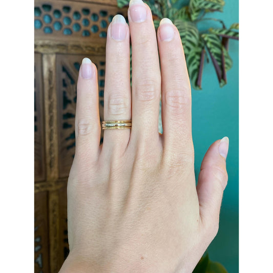 Vintage Solid 14k White & Yellow Gold Lined Ring Band - Size 5